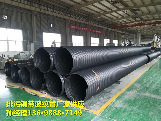 钢带增强聚乙烯螺旋波纹管以其特有的性能已成为地埋排水管中的“佼佼者”,全称为:钢带增强聚乙烯螺旋波纹管,是用连续钢带压成近似“U”形的螺旋钢带,再将其缠绕在内外两层热熔接的聚乙烯间而形成的。是借鉴国外先进的金属塑料管材复合技术,而开发的一种HDPE与钢带熔融而成的增强型管道,产品执行国家CJ/T225-2011标准,管壁结构有三个层次构成,以螺旋缠绕成型的高强度钢带为增强体,以高度密聚乙烯为基体,采用独特的制造工艺,将钢带与高密度聚乙烯融合成一体,使其既具有塑料管的柔韧又具备了金属管的刚性,环刚度达到SN16,适合大、深的市政工程应用。
