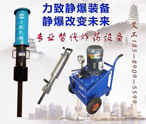 力致牌液压静爆设备具有体积小、重量轻、操作方便、安全可靠、使用灵活、工作效率高、工作时无振动、无冲击、无噪音、无粉尘、分裂方向可控性、经济实用等特点。