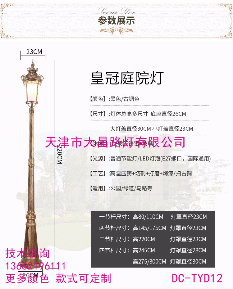 天津市大昌路灯有限公司坐落于中国大的轻工业城市——天津,专业生产各类户外灯具, 集产品设计、开发、制造、检测于一体。本公司自2004年成立以来,坚持“时间证明一切”的原则,所制造的灯具广泛用于道路、广场、公园、厂矿企业等,科 技含量高、工艺先进、造型优雅、布光合理、坚固耐用、质量可靠,以“新颖、美观、精湛”赢得广大用户和同行业的好评. 公司现有员工160余人,其中工程技术人员20余人,市场开发人员30余人,公司占地面积13000㎡,展厅面积3000平米,固定资产850万元。拥有 专业生产设备60多台套,其中1200T大型折弯机能加工一次成型15米钢杆,另有数控压铸机;高速纵剪机;自动收口埋弧焊机;埋弧焊 气焊;焊接探伤设备;等离子切割机;合缝机;校直机;喷塑生产线;大型烘箱;不锈钢生产设备;冲床;车床;刨床;钻、弯等设备。公司专业生产各种高杆灯、道路灯、组合灯、庭院灯、礼花灯、草坪灯、景观灯、太阳能路灯、交通信号灯、各种LED灯、路灯基础等。 公司奉行“诚信敬业、科技领先”的宗旨,通过严格的内部管理和科学的营销机制,产品赢得了广大用户的信赖和厚爱,销售网络遍及全国二十多个省
