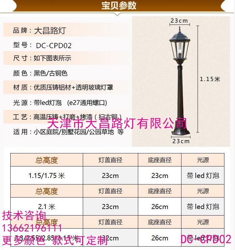 大昌路灯有限公司坐落于中国轻工业城市——天津。是专业生产各类户外灯具,集产品、设计、开发、制造、检测于一体。