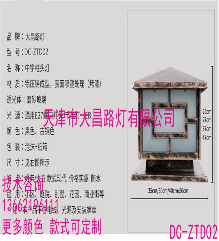 名称:中字柱头灯