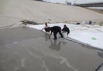 件基层进行第一道涂刷。若缝隙仍未填实,再用砂布在缝隙周围进行涂擦,进一步弥合缝隙,其后再用修补剂进行第二道涂刷。早期的裂缝处理时,应对有缝隙的整个面层进行两道的修补剂涂刷。此方法不仅将缝隙封闭而且修补剂具有自养的功效,对构筑物的强度增长非常有利,同时也能起到防止后期裂缝的再次发生。