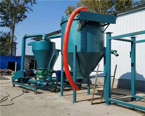 5、本机根据用户需求可配进料斗以适应单独用于压送。用于压送时需将分离筒,连接管路,除尘器卸掉。将进料斗装在闭风器的进料口处,风机进风口接风量调节阀。通过料斗插板控制进入闭风器的物料流量即可,一般压送可提高机器产量约20%左右。