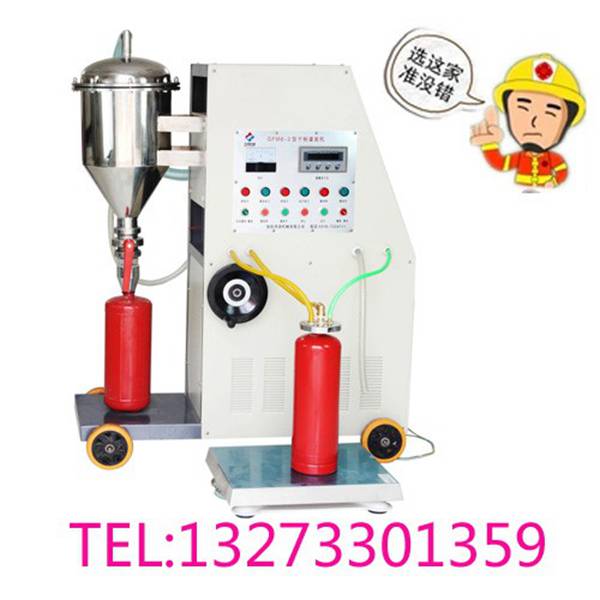 灭火器灌装机自动灌装干粉装置,属灭火器干粉自动灌装机械设备技术领域。它由真空泵、真空罐、灌装控制器、过滤罐、注粉头等构成,真空罐的两侧分别设有过滤罐和灌装控制器,过滤罐通过连通管与真空罐连通。灌装控制器的下方设有计量秤,灌装控制器与计量秤之间设有注粉头,注粉头通过灌装控制器分别与过滤罐和粉料仓连接,本实用新型灌装时无粉尘污染,解决了现有灌装过程中干粉粉尘散溢飘散,对工作人员的身体健康造成很大的伤害,且飘散在空气中的干粉粉尘也会造成环境污染的问题,是消防器材生产、维修厂家对各种规格的手提式及推车式干粉灭火器进行灌装的理想设备,亦可适用于其它充装粉末介质形式类的产品灌装使用。