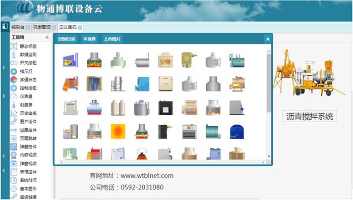 物通博联云组态平台,是专门为行业客户快速开发自定义物联网应用提供一种数据平台。不需要编程,通过简单的模块和控件拖拉绘制相应的运行画面,同时绑定设备的数据,就可以实现对现场设备的数据形象的画面监控、远程控制、数据曲线和报警展示;方便随时随地、直观、形象地实时掌控设备及项目的运行状况。