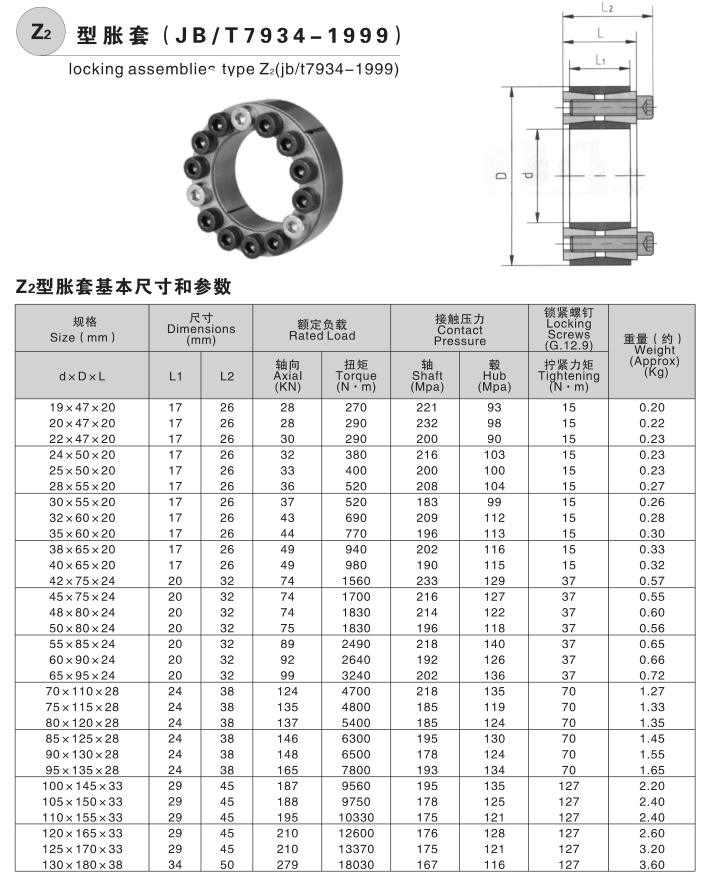 原理和用途:胀紧套是一种无键联结装置,其原理和用途是通过高强度拉力螺栓的作用,在内环与轴之间、外环与轮毂之间产生巨大抱紧力,以实现机件与轴的无键联结。当承受负荷时,靠胀套与机件、轴的结合压力及相伴产生的摩擦力传递转矩、轴向力或二者的复合载荷。胀套联接主要有以下优点:对中精度高;安装/调整/拆卸方便;强度高,联结稳定可靠;在超载时可以保护设备不受损坏,尤其适用于传递重型负荷。广泛应用于重型机械、风力发电、包装机械、印刷机械、数控机床、自动化设备等领域。