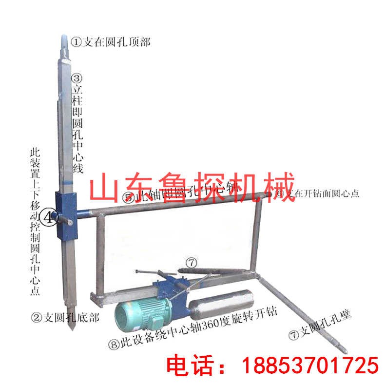 8、此非开挖钻孔机系人工跟进操作,2人即可。钻圆孔时,尺寸在1.2米以上(孔径越大,工作面大,人工操作越轻松),以保证能人能容下操作,钻筒长度为60公分,直径为16公分,沿孔壁外径钻一圈,中心部分采取人工除渣,每60公分为一阶段,即60公分除渣一次,以此类推,所钻孔洞长度为无限长。