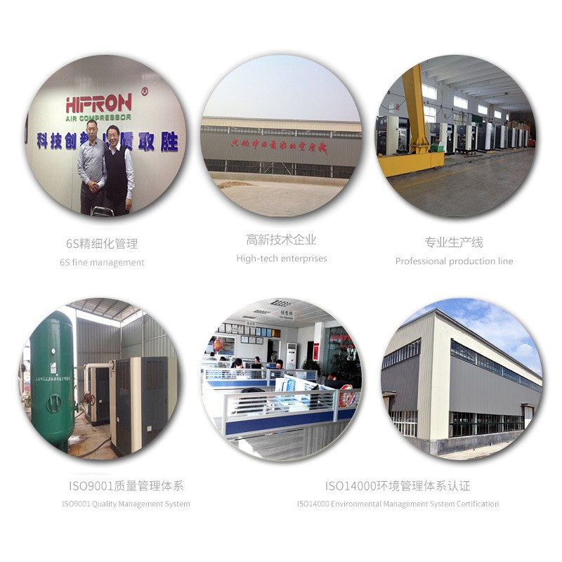 3、节能:空压机选用控制器设定控制程序,配套稀土永磁变频同步电动机加上变频器,实现变频闭环控制,可节约大量电能,比传统工频空压机可节电44%。目前,公司研发的新产品机组输入比功率达到6.9,可达到1级能效标准。