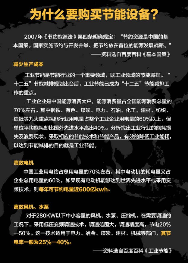 2、高效:定制稀土永磁变频同步电动机,改变其扭矩和转速,将该功率因数达95%的电机配套到大功率机头上,服务系数为1.2,再通过变频控制,实现小功率电机驱动大功率机头,达到大功率电机的产气量,效率大大提高。