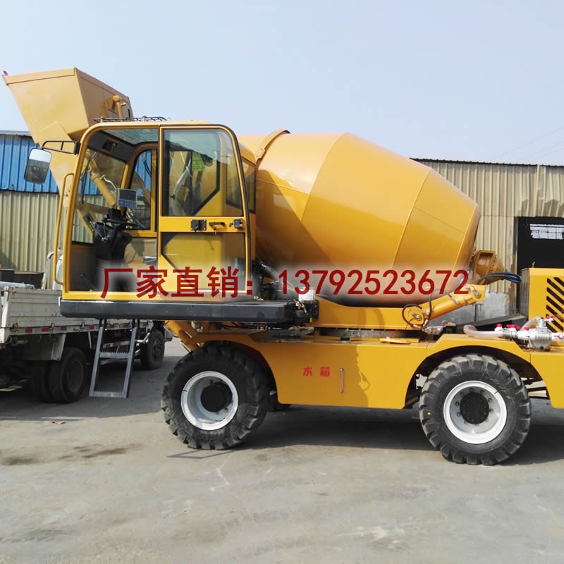 滚筒旋转通过齿轮泵开式油路的摆线液压马达实现,在操作室内和搅拌机后部拥有手动控制阀。滚筒通过2个双作用千斤顶升至水平位置。