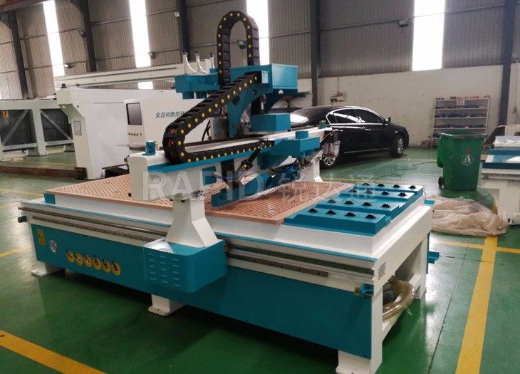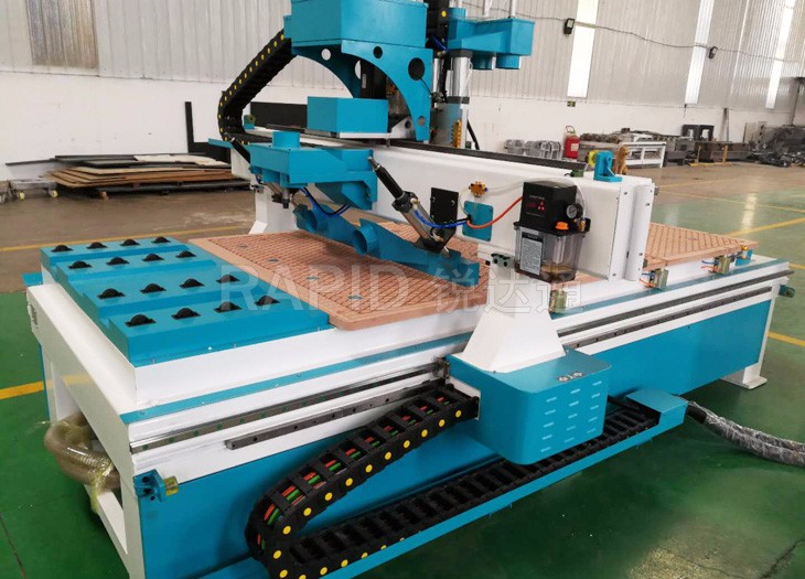 四工序开料机:主要用于打孔、开料、拉槽,气动换刀,四个主轴可实现瞬间切换,四主轴轮流工作,实现多工序加工,不 用再人工换刀,配有自动推料装置,方便上下料,大量的节省了人工劳动力,提高了生产效率。实现自动排版 板材下料 异形 切割 垂直打孔等功能,完全可以代替大锯,节省锯工,节约成本。