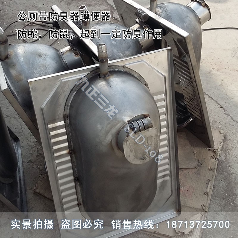 不锈钢防臭蹲便器就是在水冲蹲便器基本之上加一个防臭装置,此部分为两种,一种是固定型,另一种是分离型,该产品多用于公厕.