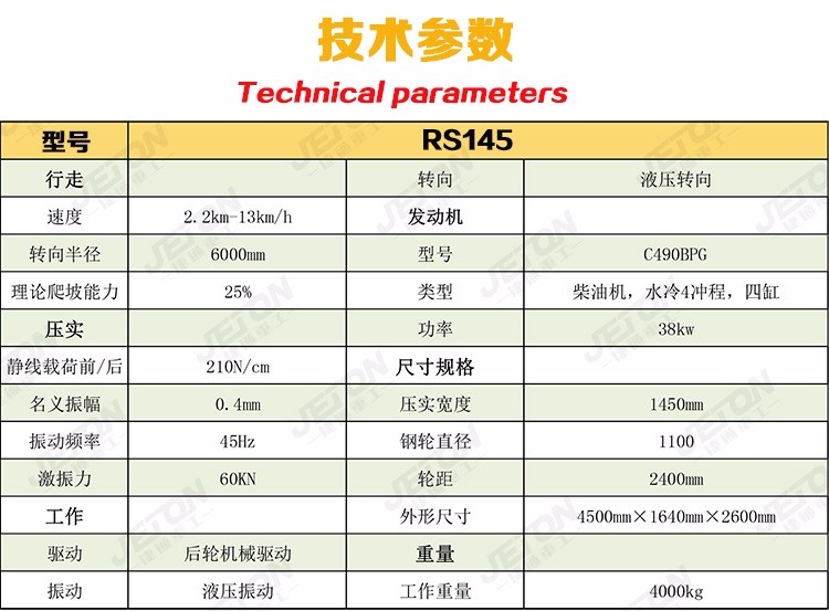 1前钢轮液压振动;后桥式轮胎驱动;抓地爬坡能力强;