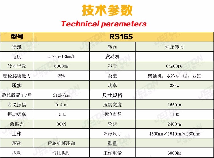 1前钢轮液压振动;后桥式轮胎驱动;抓地爬坡能力强;