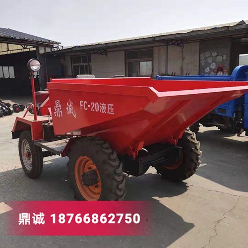 全液压翻斗车,采用前轮驱动,全液压铰接式转向,液压翻斗,低压宽断面轮胎,可摆动后桥,双管路气压制动,具有驱动力大,越野性能好,转弯直径小,操纵轻便灵活,简易式驾驶棚造型美观,独特,国内首创。该产品广泛适用于建筑、筑路、矿山、水利等部门对混凝土、土石方等散装物料作中短距离运输,与挖掘机、装载机、搅拌站配套使用更能发挥其机动灵活,作业效益高的优势。