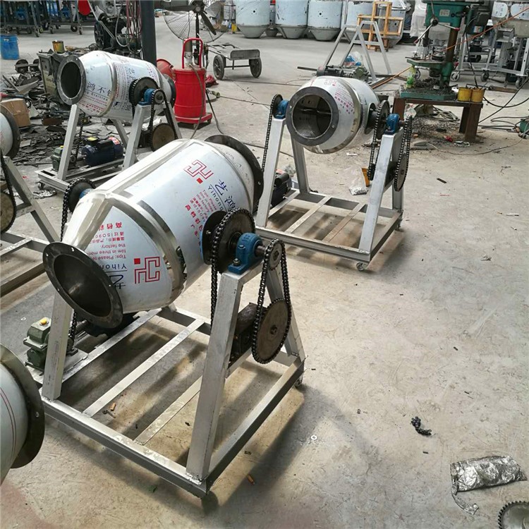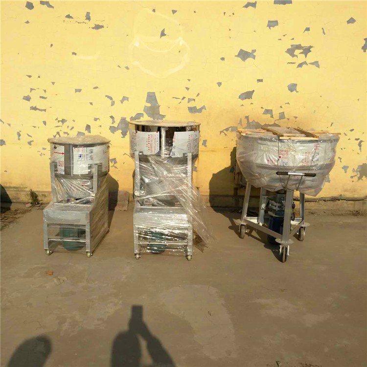 长期以来,中小养殖场饲料的搅拌是一个大的问题,大多数都是采用铲子进行简单的搅拌,这种简单的搅拌对使用量较少的饲料中需要添加的各种预混料、药物等很难均匀搅拌,经常造成药物不能全面发挥效果,甚至导致局部过多的药物或添加剂引起动物中毒;加上饲料搅拌非常辛苦,特别是需要发酵的饲料和饲喂湿料,由于重量过大,搅拌吃力,劳动强度大,虽然发酵饲料、农家饲料、自配饲料成本要低于购买的商品全价饲料,由于劳动强度过大的因素而放弃。市场上有许多类型的饲料搅拌机,但一般都是一次性搅拌超过1吨的干料搅拌机,体积很大,需要要使用三相电源,功率在7.5KW以上,一般中小养殖场很难做到;加上又不能搅拌湿料,造成想降低养殖成本使用发酵饲料、高营养牧草混入饲喂、农家饲料混合饲喂等不能实现;市场上也有小型的食品搅拌机,不仅价格高,且不能移动,搅拌量也不大。移动式小型饲料搅拌机的问世彻底解决了上述的几个问题:干料湿料可以搅拌、使用220V电源、可以移动、不生锈、有盖子防止苍蝇骚扰等多种优点。