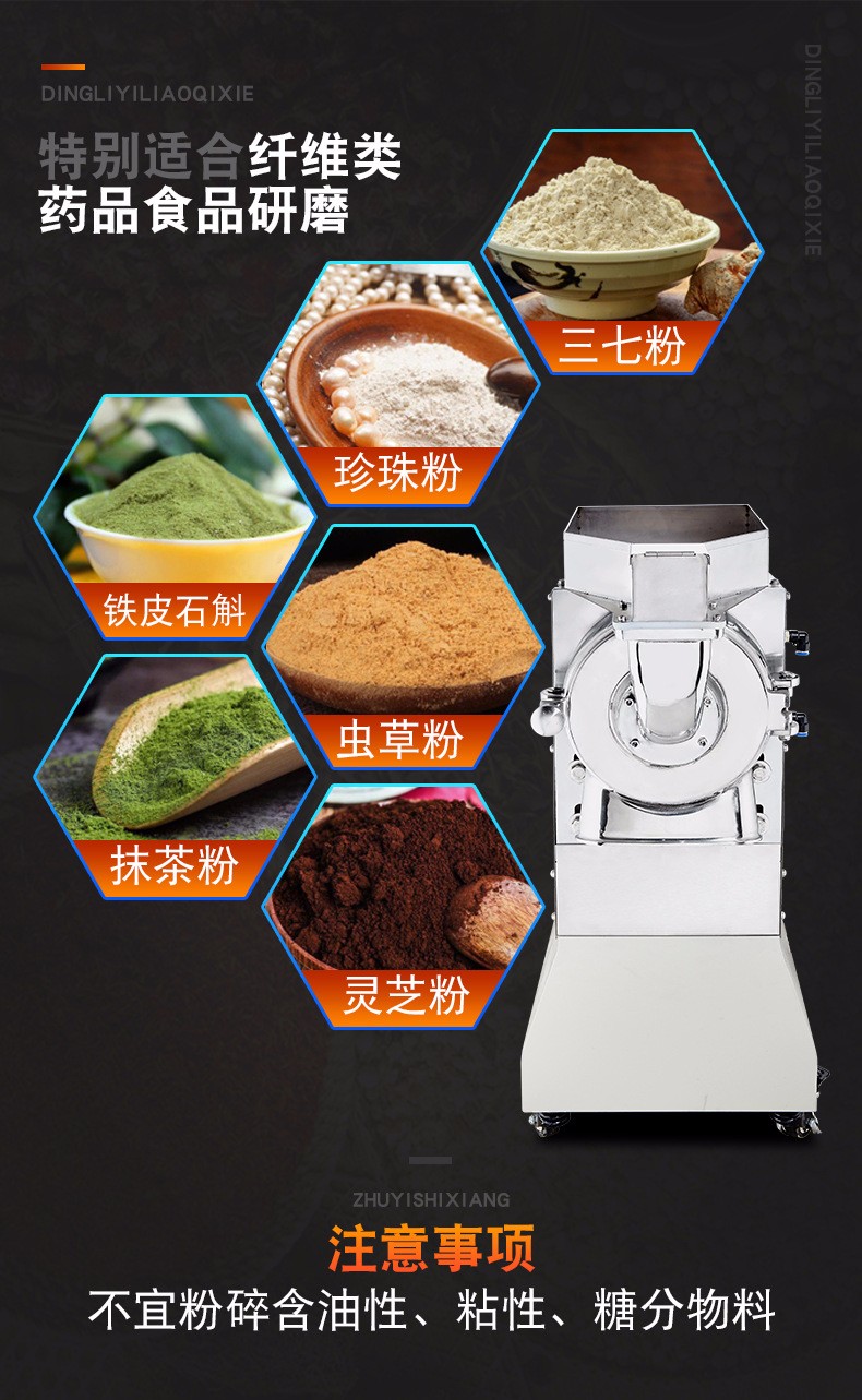 粉碎细度高达200目以上。无需多次粉碎或过网筛选。适合中药材物料范围广,