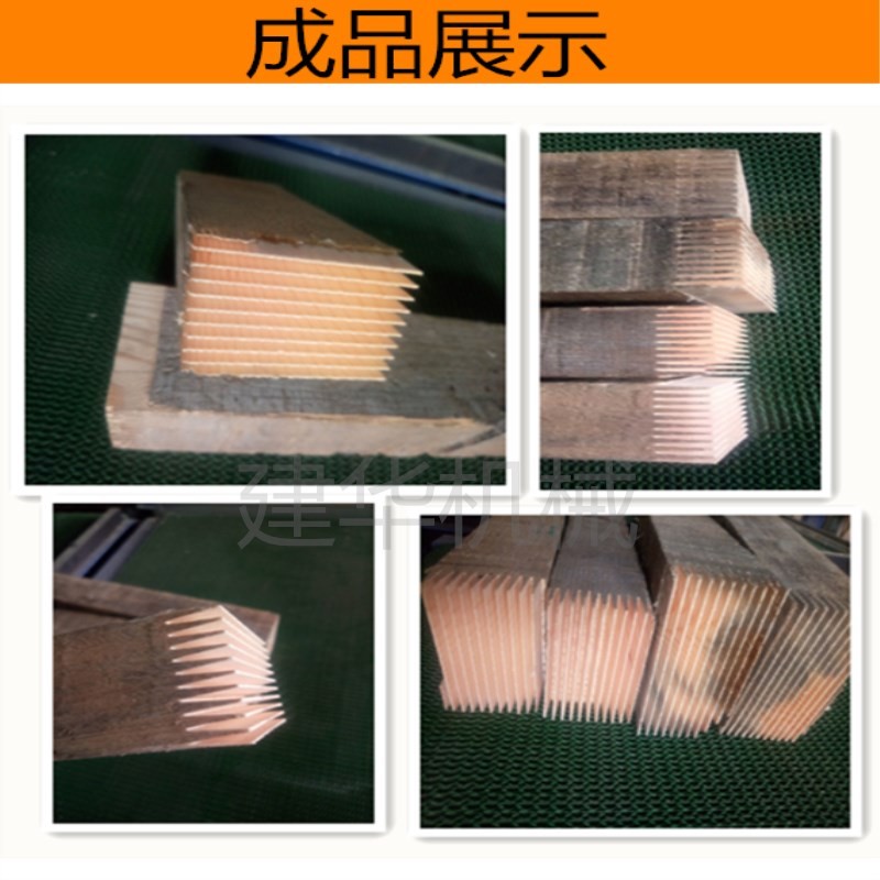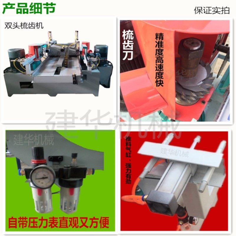 ①机架:机架采用优质钢材制成,用于支撑滑轨横梁、送料推台、、齐头锯总成、梳齿刀筒等。