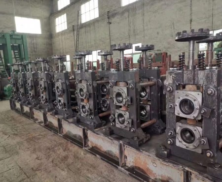 轧制力变化可以改变轧件的厚度,同时轧制力的大小同样可以通过改变张力进行控制。改变张力进行厚度控制与改变压下位置进行厚度控制相比,调整张力具有反应快,惯性小并且易于稳定的优点。所以在成品机架,为了进一步提高成品钢板厚度控制的精度,需要采用张力AGC控制进行钢板厚度微调。 张力AGC控制原理就是通过轧钢机出口侧放置的X射线测厚仪来测出钢板厚度的偏差,进行机架之间钢板上张力的微调,由此消除钢板厚度的偏差,形成板厚的自动控制系统。张力微调的实现有两个途径:其一根据测得的钢板厚度偏差值,来改变精轧机的轧制速度;其二可改变活套机构的定转矩。其控制框如图所示,经X射线测厚仪测量出钢板厚度偏差后,经过张力调节器TV的作用下,由K1和K2开关的不同位置,把响应的控制信号分别传输给活套的张力调节器或电动机的速度调节器。 我们振元机械是生产冷 热轧钢机 轧钢机设备 铅板轧机....各种型号两辊冷轧机 四辊精轧机 可逆轧机 二、三连轧机及各类辅机型号可根据客户的要求来定。也可以来图定制轧机。 欢迎广大新老客户光临我厂,实地考察!业务咨询:932174181 媒体合作:2279387437 24小时服务热线:15136468001 亚游会官网 - 全面、科学的机械行业免费发布信息网站 Copyright 2017 PGJXO.COM 豫ICP备12019803号