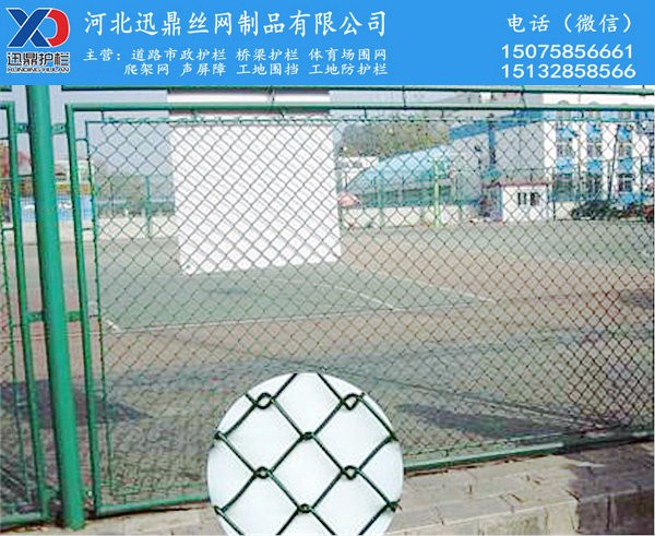 材质:镀锌钢丝,PE包塑原生料,pvc包塑。这点需要跟大家讲解一下不同材质通常应用在哪些领域方便您更好的选择,镀锌钢丝的一般用在山体防护或矿道等,PE包塑原生料是这几年用的比较多的材质,咱们迅鼎公司生产的球场围网如果客户没有要求就是PE包塑的,PVC包塑的球场围网质量较好,亮度也鲜艳,使用年限也长,经得起室外恶劣条件的考验,出口或者高品质的区域可以选用PVC,当然咱们的球场围网也没少用PVC,都是看客户要求的额!!