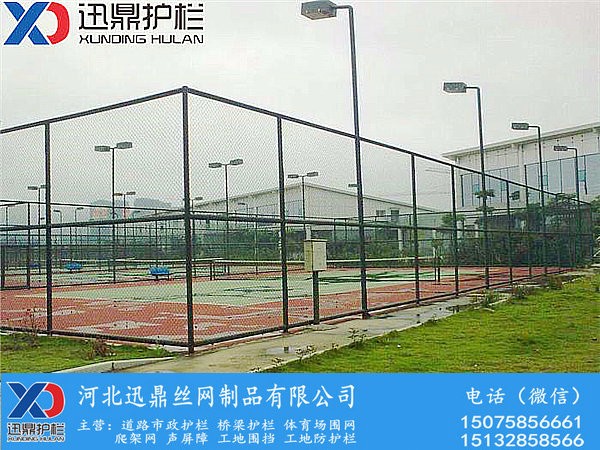 网球场围网材质:内选用优质低碳钢丝,外层进行PE包塑。体育场围网又名篮球场围网,网球场围网,体育围网,学校围网,校园围网。是专门为体育场或学校操场设计的新型防护产品,咱家迅鼎护栏的此款围网网体高、防攀爬能力强。迅鼎家体育场围网属于场地围网的一种,它又被称为:"体育围网",可以在现场施工安装围柱,围网。产品特点是灵活能力强,可根据要求随时调整网片的结构,造型和尺寸。体育场围网适用于高度6米以内的作为操场、足球场地、篮球场地、网球场地、高尔夫场地、排球场地和体育训练场地使用。