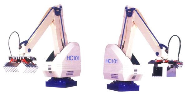 产品说明: | HCl01码垛机器人 1、简介 HC-101机器人具有定位精度高,运行速度快工作范围大等特点。控制系统方面内置匀料码垛操作模型又可示教作业操作简单方便。 2、典型应用为: (1)箱类包装:啤酒.饮料、乳业.医药食品.家电等。 (2)袋类包装.粮食,化肥饲料.石化、建材等。 (3)桶类包装-桶状包装,涂料桶.化学品罐等。 (4)其他:可根据客户产品的特性进行非标定制。 3、机械结构特点 (1)腰式机座结构机器人站立更稳固平稳.便于旋转,移动。 (2)独特的平行四边形手臂结构设计保证手臂角度不随手臂伸缩而变化。 (3)驱动电机、减速传动结构全部下置减轻手臂重量,使得手臂运动轻巧,机械惯量小,便于快速加减速.快速运动。 (4)关节式结构,所有电缆通过手臂手臂内部布置只有在关节处有微小弯曲动作简化了电缆布置延长了电缆弯曲伸缩的寿命.并且布局美观。 (5)关节结构的巧妙设计使得手臂的伸缩范围达到极致水平作业范围可达330度手臂伸缩范围为1560mm. (6)重复定位精度可达1mm。 (7)圆柱坐标系,码垛区域明确.更适合码垛作业。 (8)丰富多样的抓手形式,可广泛应用于石化、饮料,食品药品啤酒、饲料等行业。 4、控制系统特点 (1)以“基于PLC的4轴运动控制系统”为核心进行构架通用性强可靠性高。 (2)采用的是全伺服机器人驱动控制技术。 (3)优化的机器人轨迹规划控制技术。 (4)人机界面友好,操作简单快捷。 (5)全部源程序自行开发便于升级、修改维护及客制化。 (6)示教作业,简单易操作。用户编程可采用坐标设定或示教法进行图形化操作。 (7)内置多种码垛操作模型用户可依据自身码垛要求进行选择。 |