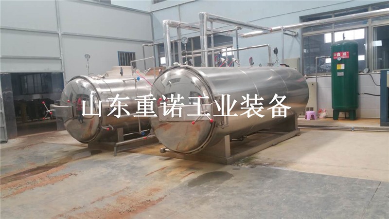 1、蒸汽单锅:蒸汽为加热介质、压缩空气来反压操作。以注入冷水冷却。可适用于不同包装、不同食物的杀菌。具有操作简便、升温速度快、运作成本低廉,食品生产中最通用的杀菌设备。容易产生杀菌死角。