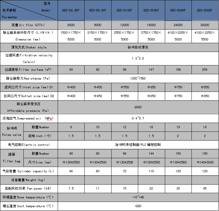 GED-DNKF系列分体式滤袋除尘器,又称为气箱式脉冲反吹布袋除尘器,它集分室反吹和脉冲喷吹等诸类收尘器的优点,克服了分室反吹时动能强度不够,过滤与清灰同时进行的缺点,因而使袋式收尘器增加了使用适应性,提高了收尘效率。广泛应用于水泥厂的破碎、包装、库顶、熟料冷却机和各种磨机等收尘系统,还应用于冶金、化工、机械和民用锅炉等废气的收尘。