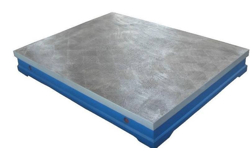 按JB/T7974-1999标准制造,产品制成筋板式和箱体式,工作面有长方形平板、正方形或圆形平台,材料HT200-300,QT400-600,ZG15-45。工作面采用刮研工艺,工作面上可加工V形、T形、U形槽、燕尾槽、圆孔、长孔等。平板是用于工件检测或划线的平面基准量具。平板安装就调至水平板、负荷均匀分布于各支点上。环境温度(20?5)℃。使用时应避免振动。