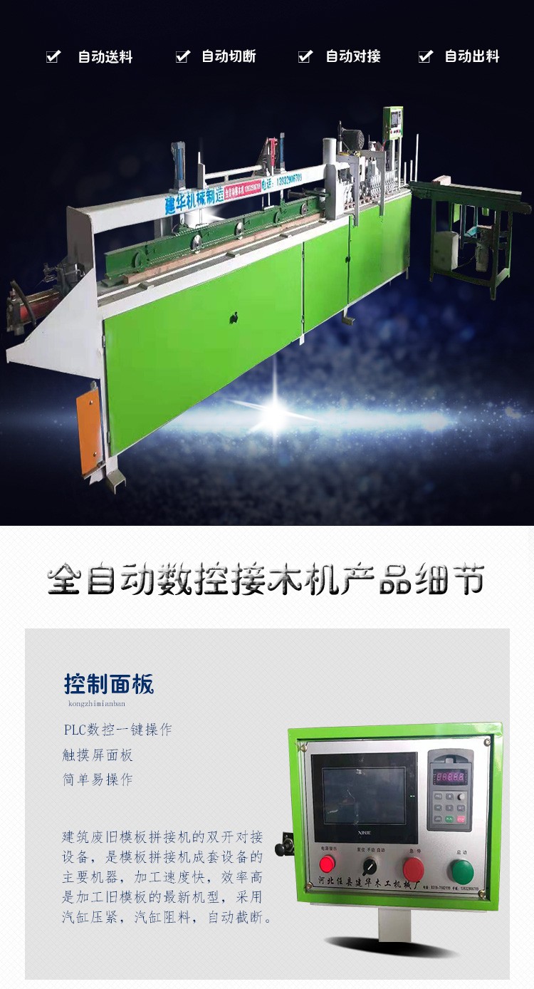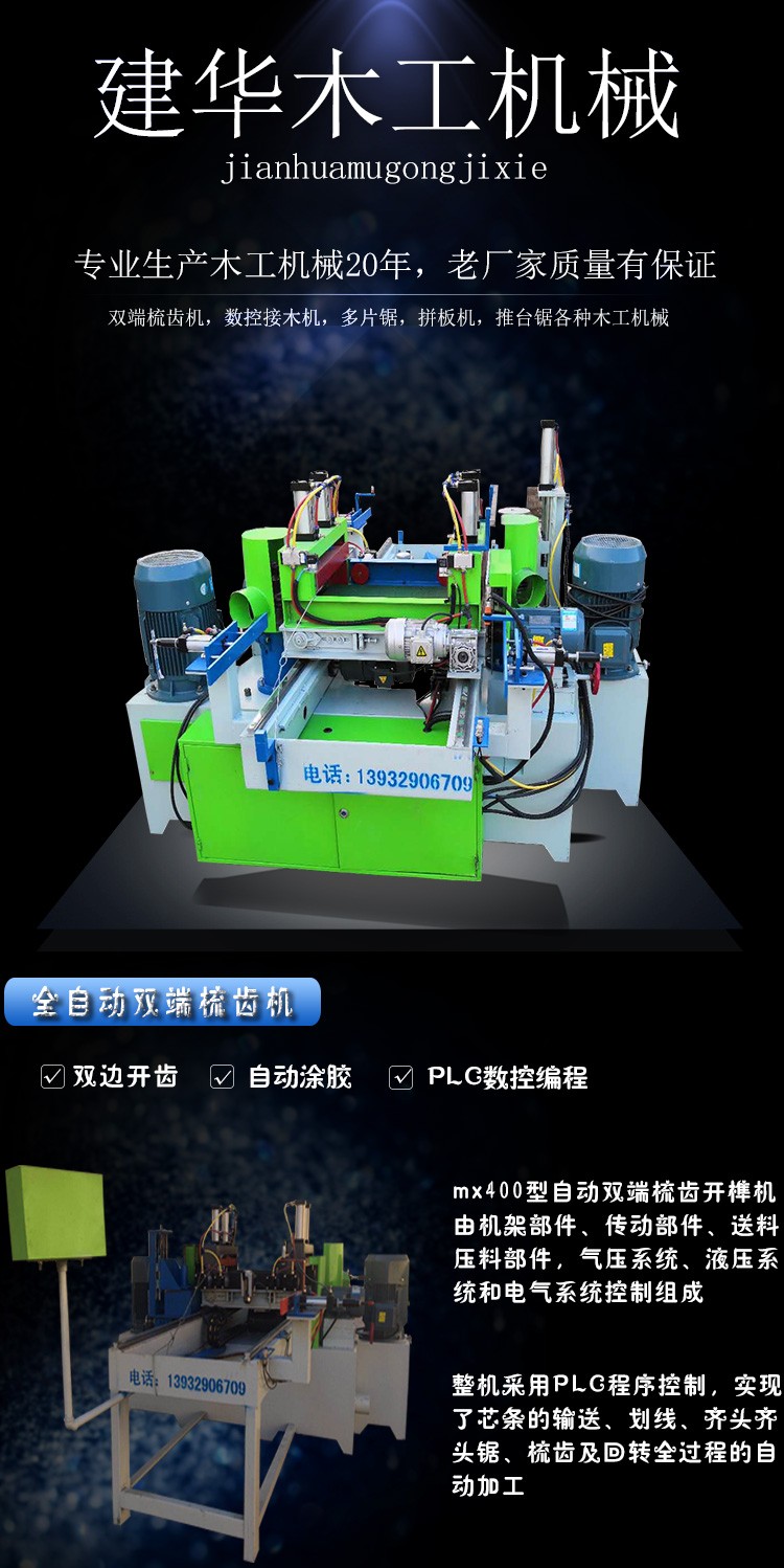 用途:本机床是集成材料生产线的重要设备之一,它的作用是:将已开好榫槽准备上胶的短木料,纵向接成为长料,可提高木料的利用和提高木料的品质。