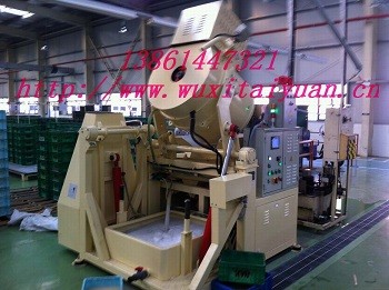 本机为带变频调速的新型高效全自动涡流式研磨机。具有外形美观、结构合理、操作方便、调速范围大、翻转灵活、倾倒角度大、运转平稳、噪音低、研磨效率高等特点,能有效地解决振动研磨中工件重叠、研磨不均等问题。特别是对于较轻小的工件,较厚的氧化膜及较大毛刺的工件,在振动机中加工困难而在涡流研磨机中可在很短的时间内达到理想的效果。并可提高表面粗糙度2级以上。研磨效果是振动机的10倍左右。