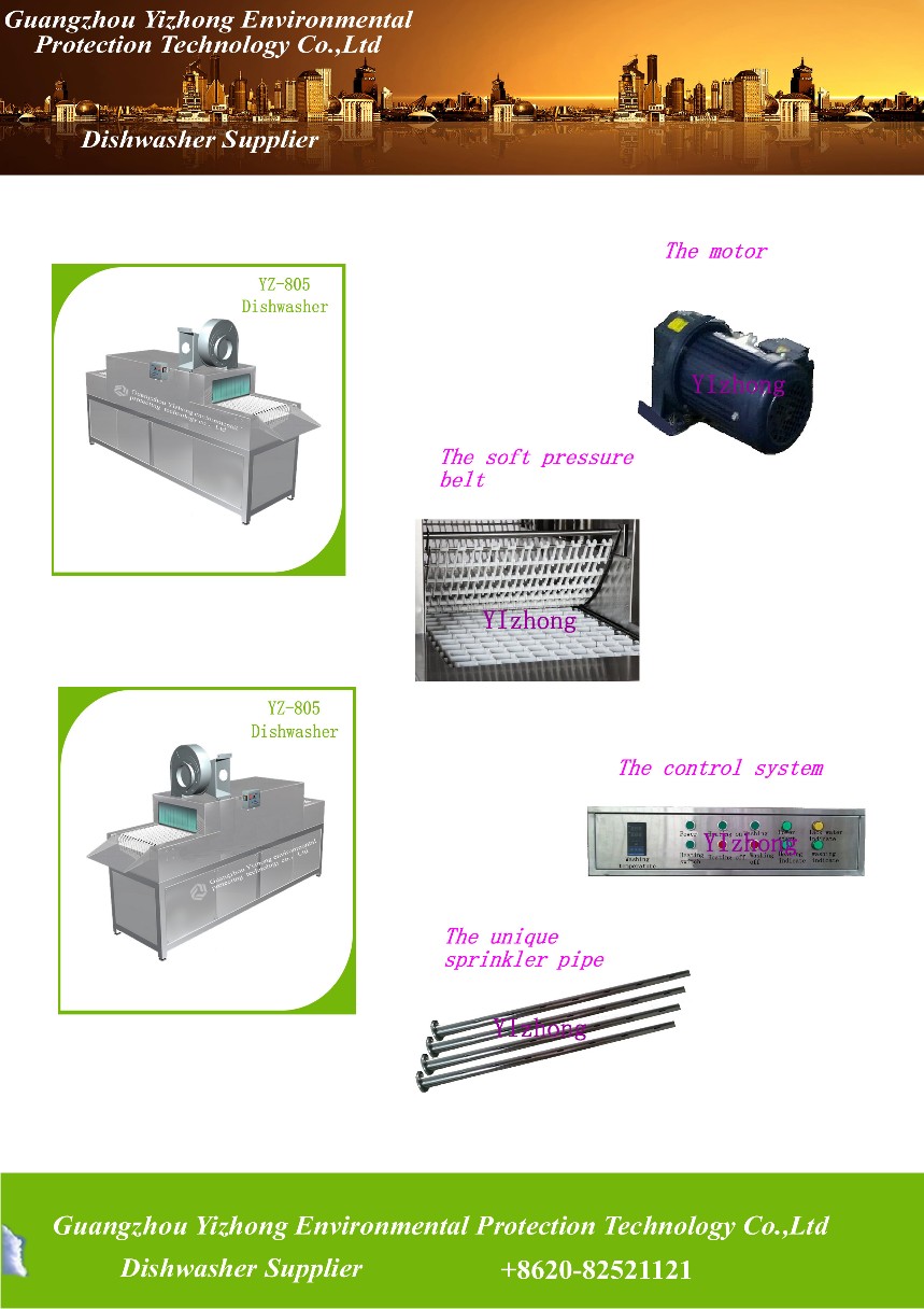 1、操作简单:传统洗碗机大都是蓝传式洗碗机,清洗需借助清洗筐,浪费人力,并且对餐具形状要求高(必须统一)。我公司YZ-805系列专门针对酒楼、食堂餐具形状不一,希望节省人力而设计,采用平放式传送带,不需装框,不必考虑形状,直接摆放清洗即可。