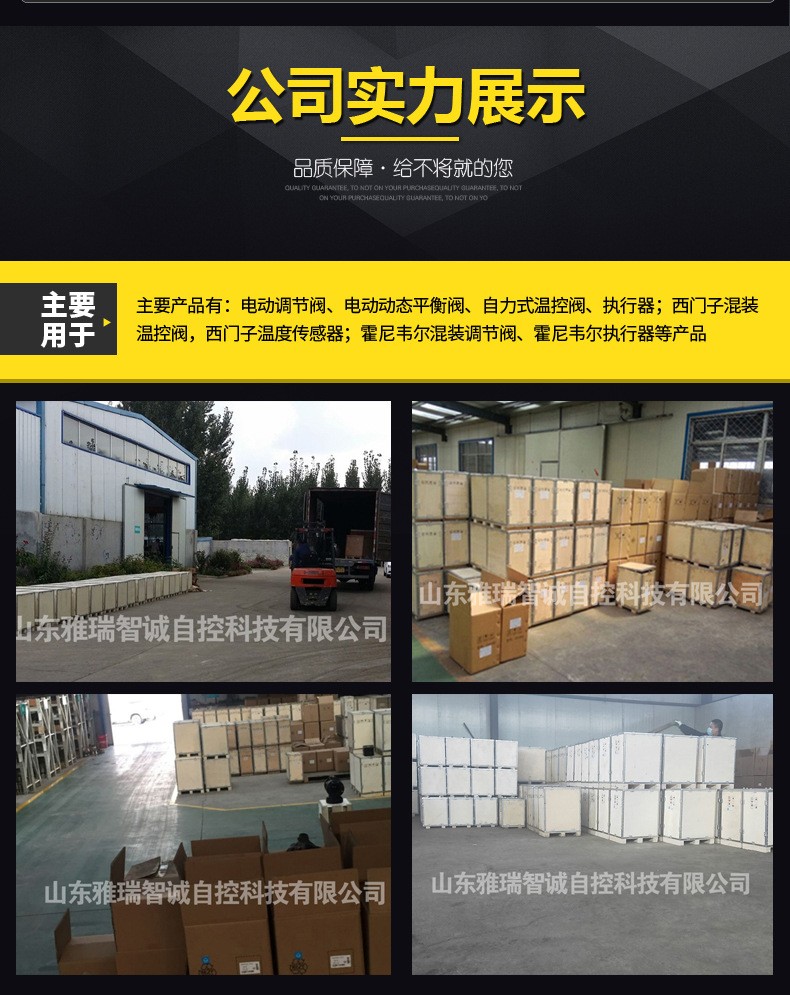 山东雅瑞智诚自控科技有限公司是西门子电动调节阀、西门子产品、电动调节阀、自力式温控阀、减温减压装置等产品专业生产加工的公司,拥有完整、科学的质量管理体系。山东雅瑞智诚自控科技有限公司的诚信、实力和产品质量获得业界的认可。欢迎各界朋友莅临参观、指导和业务洽谈。