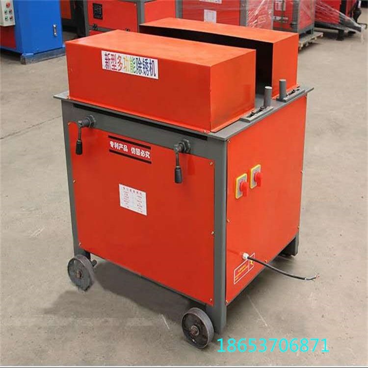 多功能全自动钢筋除锈机一次通过式完成方矩形管四个面的打磨、除锈、拉丝、除锈,该机适用于矩形断面型材如角钢方钢带钢方钢/方管各种金属以及非金属外表面除锈拉丝8镜面除锈,抛磨采用干抛形式,可选用各种磨料磨具(砂布千叶轮尼龙轮麻轮布轮以及羊毛轮),每次可完成多道粗细不同的抛磨,通过对除锈轮形状的改造也可以对异型截面型材进行除锈。