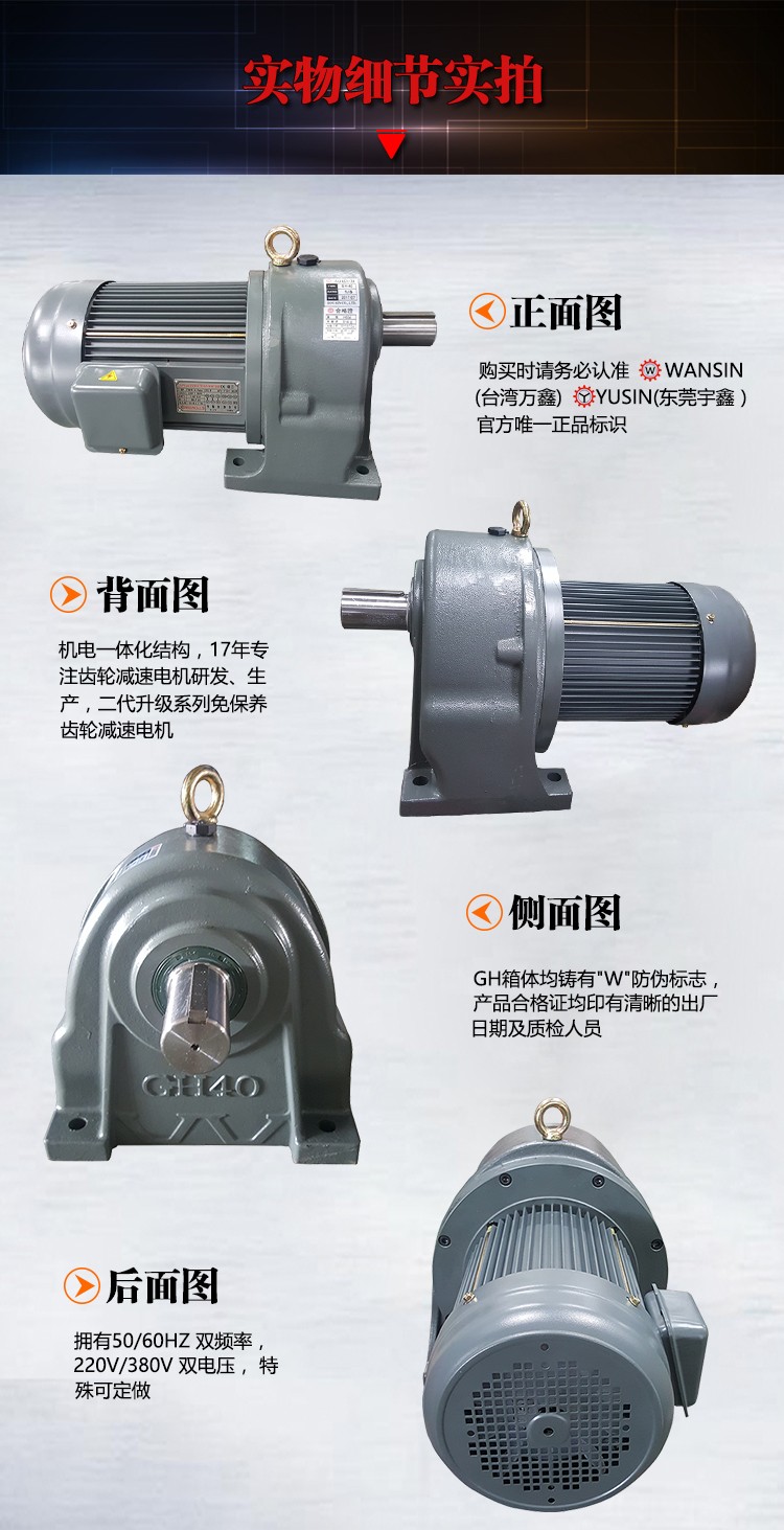 宇鑫齿轮减速马达具有高强度、体积小、噪音低、传动扭矩大,寿命高等特点,广泛用于石油、化工、轻工、纺织、食品、塑料、制药、陶瓷、印染、冶金、矿山、烟草、造纸、制革、木工、电子仪表、玻璃、环保等机械设备领域中。