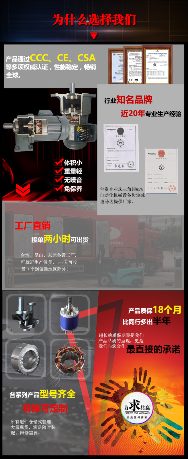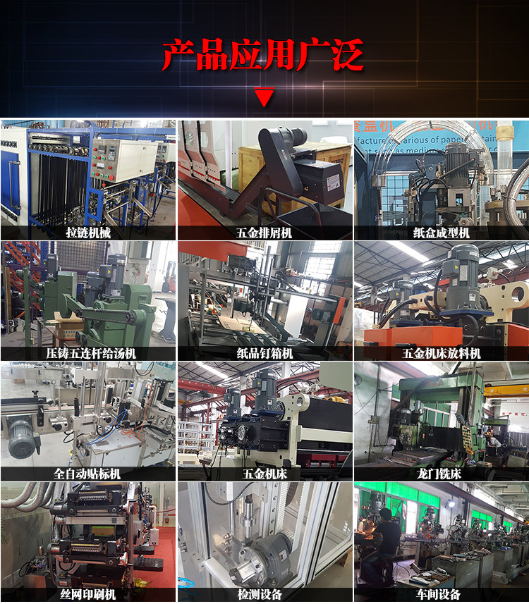 10、功率75W-3700W,减速比型号齐全,能满足各类自动化机械的工作需要。