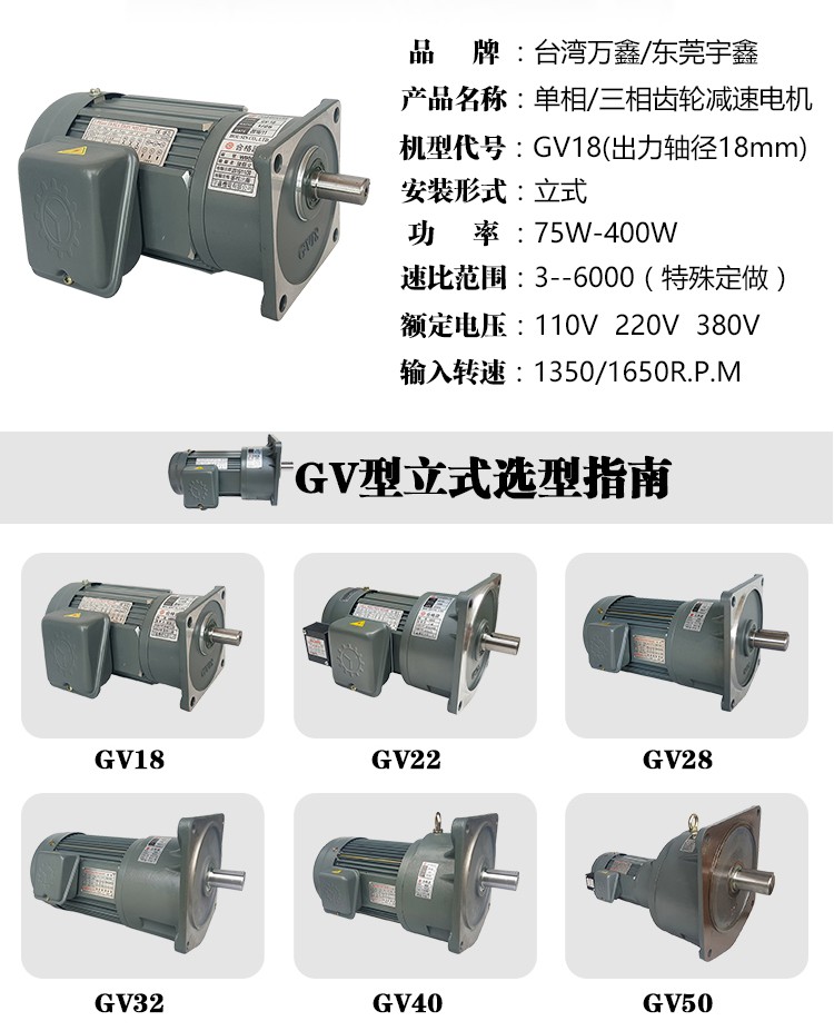 东莞市宇鑫机电公司现主要产品有大、中、小型齿轮减速电机、调速电机、刹车电机、齿轮减速机、精密行星减速机等,产品具有体积小、重量轻、噪音低、免保养的特点,被广泛应用于压铸机械、超声波清洗设备、五金机床、印刷包装机械、纸箱机械、食品机械、木工机械、电线电缆机械等自动化机械设备行业,远销东南亚等地区。