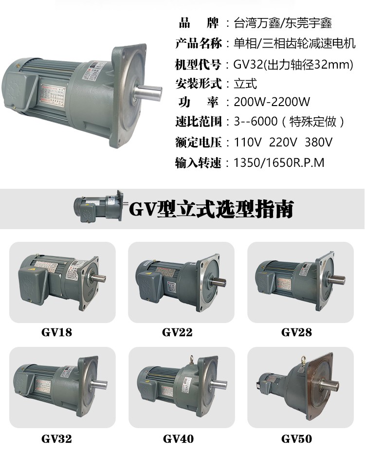 东莞市宇鑫机电公司现主要产品有大、中、小型齿轮减速电机、调速电机、刹车电机、齿轮减速机、精密行星减速机等,产品具有体积小、重量轻、噪音低、免保养的特点,被广泛应用于压铸机械、超声波清洗设备、五金机床、印刷包装机械、纸箱机械、食品机械、木工机械、电线电缆机械等自动化机械设备行业,远销东南亚等地区。