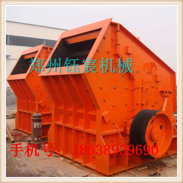 反击式破碎机是一种利用反击能来破碎物料的破碎机械。本机工作时,在电动机的带动下,转子高速旋转,物料进入板锤作业区时,与转子上的板锤撞击破碎,后又抛向反击装置上再次破碎,然后又反击衬板上弹回到板锤作业区重新破碎,此过程重复进行破碎,直到物料被破碎至所需粒度,由出料口排出。调整反击架与转子之间的间隙可达到改变物料粒度和物料形状的目的。