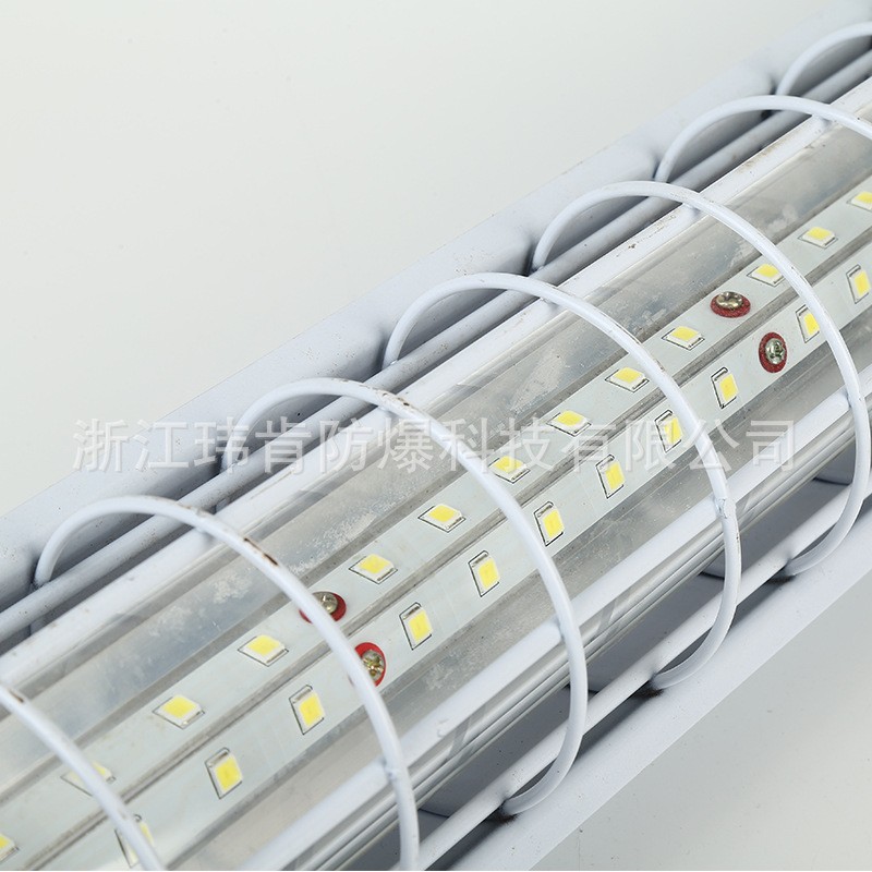 灯具由上壳体组、中壳体组和下壳体组三部分组成。上壳体组内装有接线端子;中壳体组内分别装有驱动板和LED光源;下壳体组由玻璃罩、金属防护网罩和下壳体组成;壳体是由合金铝压铸、加工而成;三个壳体组采用止口快启门的连接方式,各壳体组间的安装旋转90度即可;接线、更换驱动板或更换光源、玻璃罩时无需拆卸其他部件,只需旋转上壳体和中壳体或中壳体和下壳体90度,便可单独进行,因此安装使用及维护极其方便。