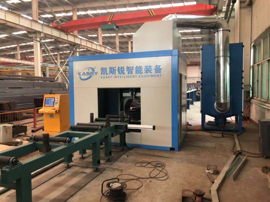 为了焊接,H型钢端头要根据搭建类型切出不同的工艺类型研发出新型H型钢切割机。搭建类型的复杂性和H型钢尺寸类型的多样性,对H型钢切割机系统提出了更高的要求。H型钢设计的大型结构框架,广泛应用于各种建筑领域,如陆地或海上石油钻井平台、船体、大型超市和体育场馆、桥梁以及电视或通讯信号塔等。目前市场上使用的单机器人数控切割系统,由于加工效率和自动化程度较低,无法满足日益增长的H型钢切割需求。基于多机器人的自动化H型钢切割数控系统的研究被提上日程。凯斯锐针对机器人开放式H型钢切割机系统展开研究。