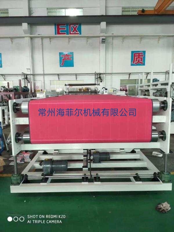 常州海菲尔机械有限公司的网带成型输送机(熔喷布成网机 熔喷布网帘网带输送机 熔喷布网带接收机),带电动升降机调节,可前后移动,上下移动带张力调节,带自动纠偏,不跑边,成网稳定。