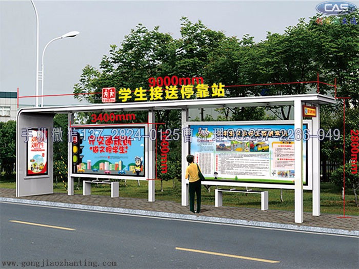 生产道滘镇公交候车站亭 #广州市公交车亭 #越秀区公交车候车亭 #荔湾公交候车站亭 #海珠公交车亭定做热线137~2824~0125(微信同号)曹经理QQ:257-2266-949急单请加拨132~6881~4669为方便乘车市民候车时可以进行遮阳、防雨,公交候车亭的组建变得更加急迫性,所以对公交候车亭的制作的个性化、安全性等等也有了要求,并且,公交候车亭也是很多广告公司所关注的对象,在候车亭站牌放置广告画布,达都一个宣传的目的,公交候车亭的遍布性也决定了信息传播的广泛性。而且,公交候车亭也是城市公共措施的一个重要组成部分。公交候车亭在给行人带来方便的同时也要能更好的保护行人的人身安全,在对候车亭的制作上就有了一定的选择性。公交候车亭制作工艺:支架主材料:304不锈钢,它的含钢量比较高。
