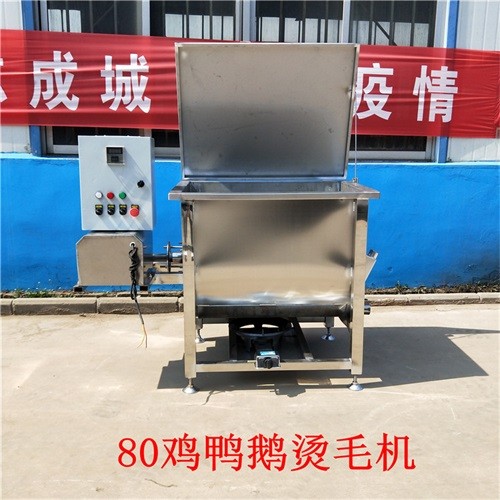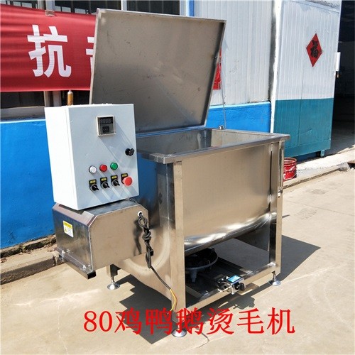宏强HQ-JTC80型鸡鸭鹅电气两用烫毛机,这款烫毛机可以使用电加热,也可以使用天燃气或液化气进行加热,也可以同时使用。使用电加热设备配有温控阀,它的的好处是可以自动控制温度,并自动升温,不用人工控制。使用天燃气或液化气加热,配有两个燃气炉子,可以直接接上液化气罐或天燃气进行加热。设备同种款式的可以使用蒸汽加热,使用蒸汽加热的设备要比这个要便宜一点,详细的情况可以咨询我们的销售人员,我们会帮助用户选择合适的设备。