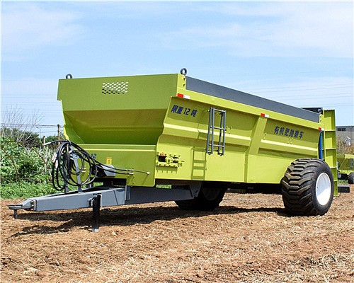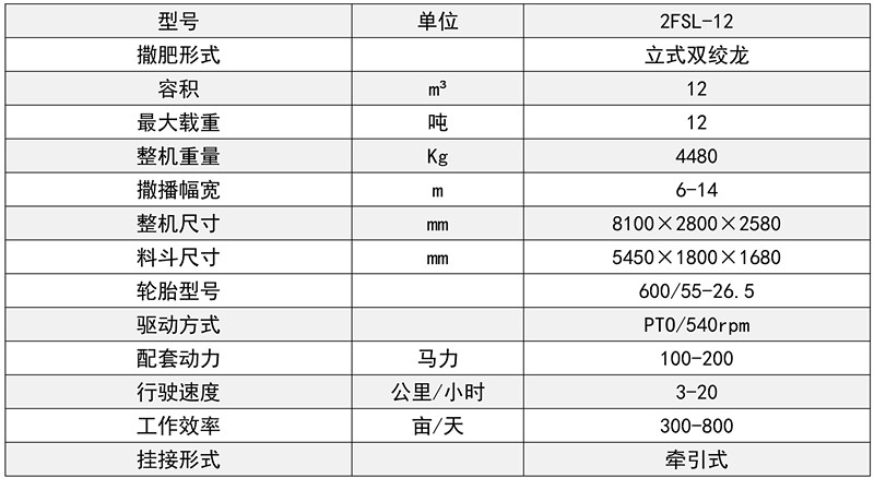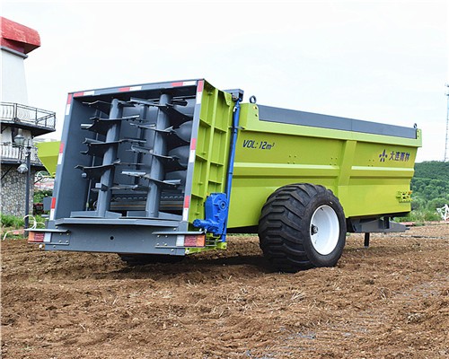双轴立式绞龙抛肥机(撒肥机/撒粪机)是一种以拖拉机为动力,把禽畜粪便、发酵后的有机肥、厩肥(包括堆肥)进行抛撒还田的新型农机具。主要由牵引架、车架焊合、肥箱、液压系统、传动系统、送肥装置、撒肥系统、地轮机构等系统组成。该机送肥系统,由拖拉机液压输出驱动液压马达工作,通过送肥装置使得整箱肥料同步后移;该机撒肥系统,由拖拉机动力输出轴驱动,通过三联体齿轮箱驱动绞龙打散肥料,同时双撒肥盘配合绞龙将肥料充分抛撒出去。
