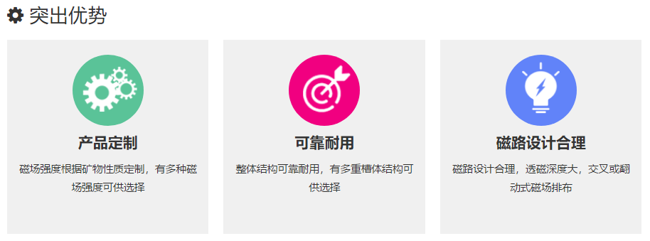 半逆流槽适用于矿石粒度为0.5~0mm的粗选和细选,适用于粒度为0.15~0mm矿物的细选; 逆流槽适用于矿石粒度为0.6~0mm的粗选和扫选,以及选煤工业中重介质回收; 顺流槽适用于矿石粒度为6~0mm的粗选和精选。