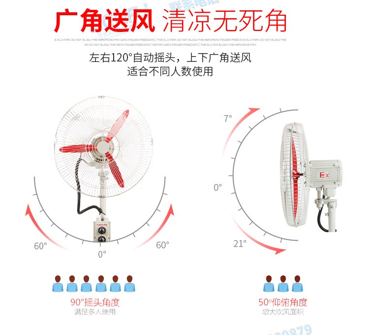 ● 产品由防爆电动机、叶轮、网罩、底座、强固安装板及摇头机构等部分组成;
