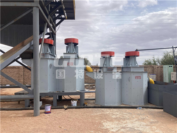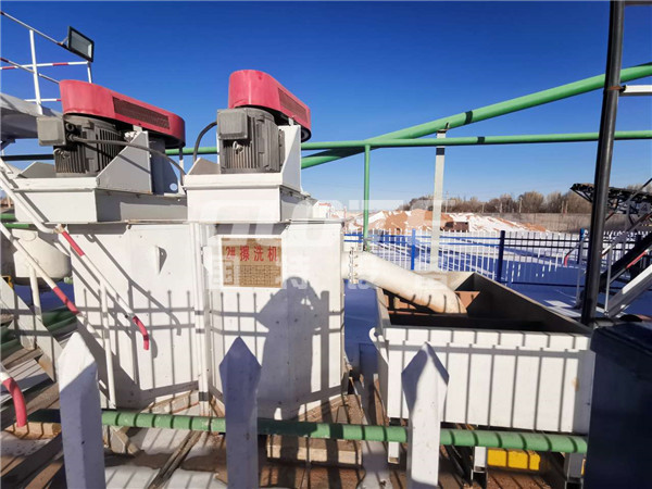 矿浆经入料管道进入擦洗机腔体内,在叶轮强大的搅拌作用下,料浆产生剧烈的紊流。矿粒在其中有巨大的动能,并且相互产生剧烈的摩擦和碰撞。包裹在矿粒表面的杂质薄膜由于强度不大,经过摩擦和撞击很容易就被剥离出矿物表面。而矿物表面的胶结物经水浸泡后再经过矿粒相互之间强烈的摩擦、碰撞也会松散、碎解,从而达到粘土质与矿粒的分离。这些薄膜杂质和粘土质碎解、剥落到矿浆中,经过后续脱泥即可分离出矿浆。在实际生产过程中,还要根据矿物实际情况添加不同药剂。