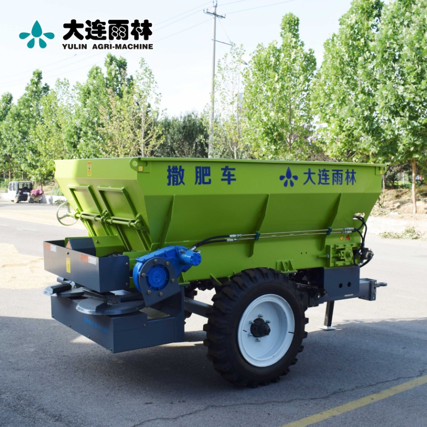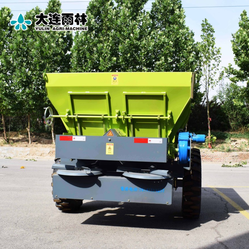 固体有机肥抛撒车是一种以拖拉机为动力,把发酵后的厩肥(包括堆肥、沤肥)进行抛撒还田的新型农机具。该机利用拖拉机作为动力输出,带动车厢内部的输送链自动把肥料向后输送,通过高速旋转的抛撒碎轮对肥料进行打碎、均匀拋撒还田。达到提高施肥效率,降低劳动强度,改善土壤结构的目的。
