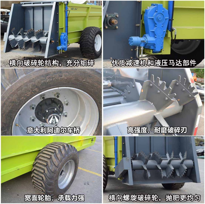 该机主要针对各种黏湿禽畜粪便,如鲜鸡粪、湿猪粪等,以及各种含水率大的工业污泥等进行抛撒还田,在完成肥料撒施的同时,对肥料进行破碎,使肥料抛撒更均匀更细碎。由拖拉机动力输出轴驱动,通过高速旋转的破碎轮将肥料打碎并抛撒出去,达到了大规模统一作业,降低劳动强度,提高施肥效率,改善土壤结构。适合规模化农牧场、合作社投入使用,撒肥效率高,抛撒均匀,成本低。